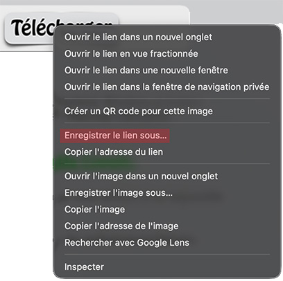 Sur l'écran de téléchargement, faites un clic droit sur le bouton Téléchargement. Un menu s'offre à vous, utilisez l'option 'Enregistrer le lien sous... '.
